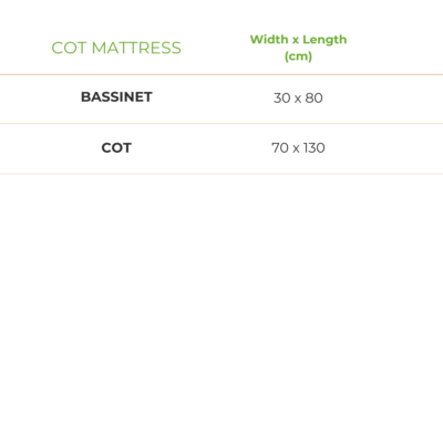 The Organic Latex 10 Cot Mattress provides a flat surface with firm support. This matches the New Zealand Ministry of Health mattress guidelines of ‘firm and flat’ as best for babies. The cover of the mattress is highly breathable, made from organic cotton and bamboo with a thick layer of organic New Zealand wool quilted to the underside.
