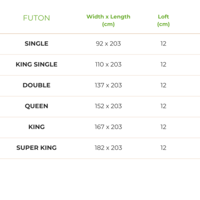 Fantastic for a child’s bed or a sofa and occasional guest bed. We do not recommend the Cotton and Wool futon for adults since they will be able to feel the slats of the base through this mattress (instead we recommend the Latex Core Futon).